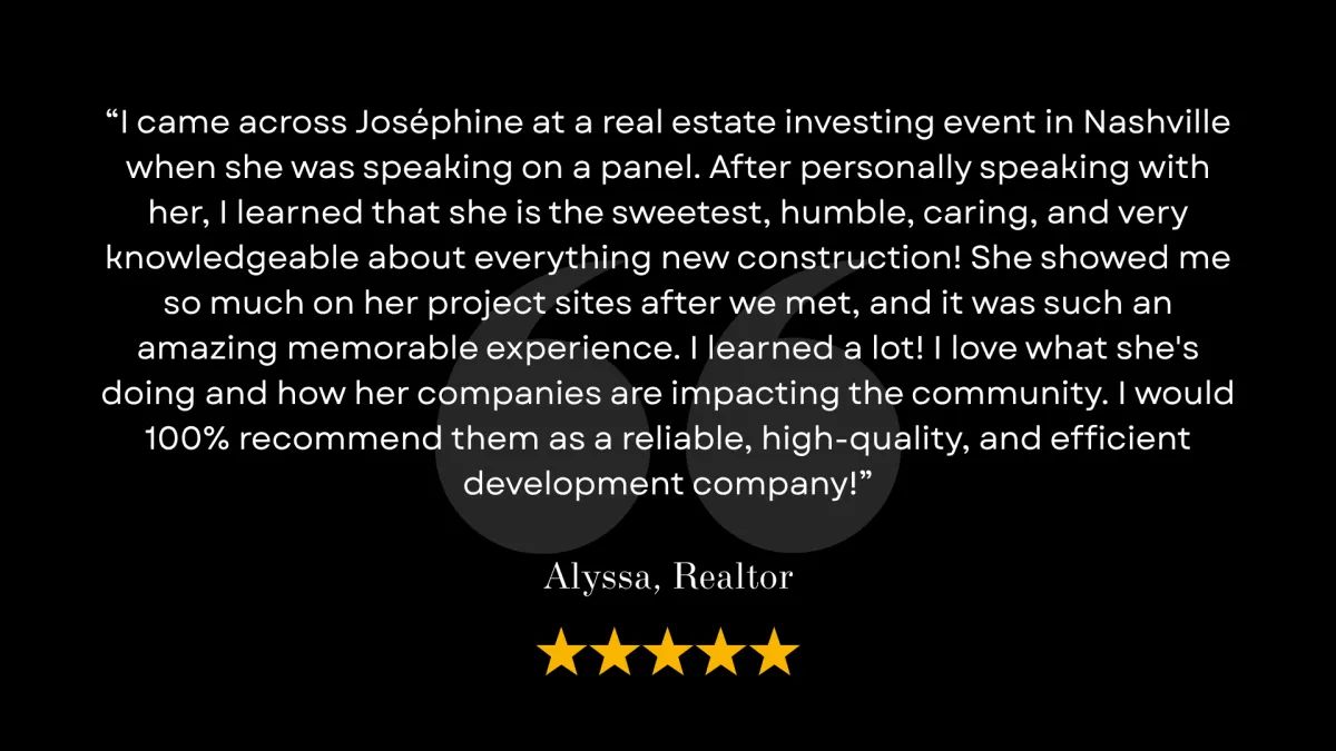 Joséphine is a German native and came to the Nashville, TN area as a D1-Track athlete recruit in 2011 . Joséphine sponsored her Green Card by providing ground-up housing opportunities in Middle Tennessee adding to the American economy as a real estate developer.